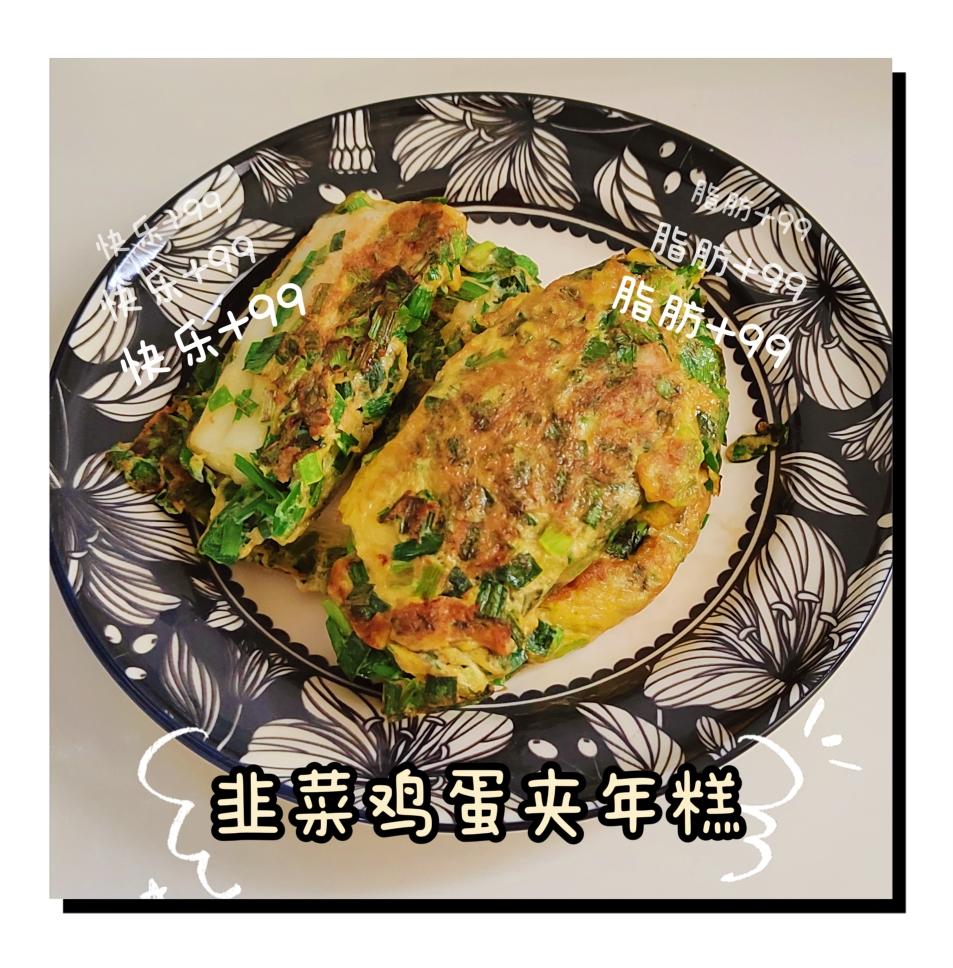 韭菜鸡蛋饼夹年糕