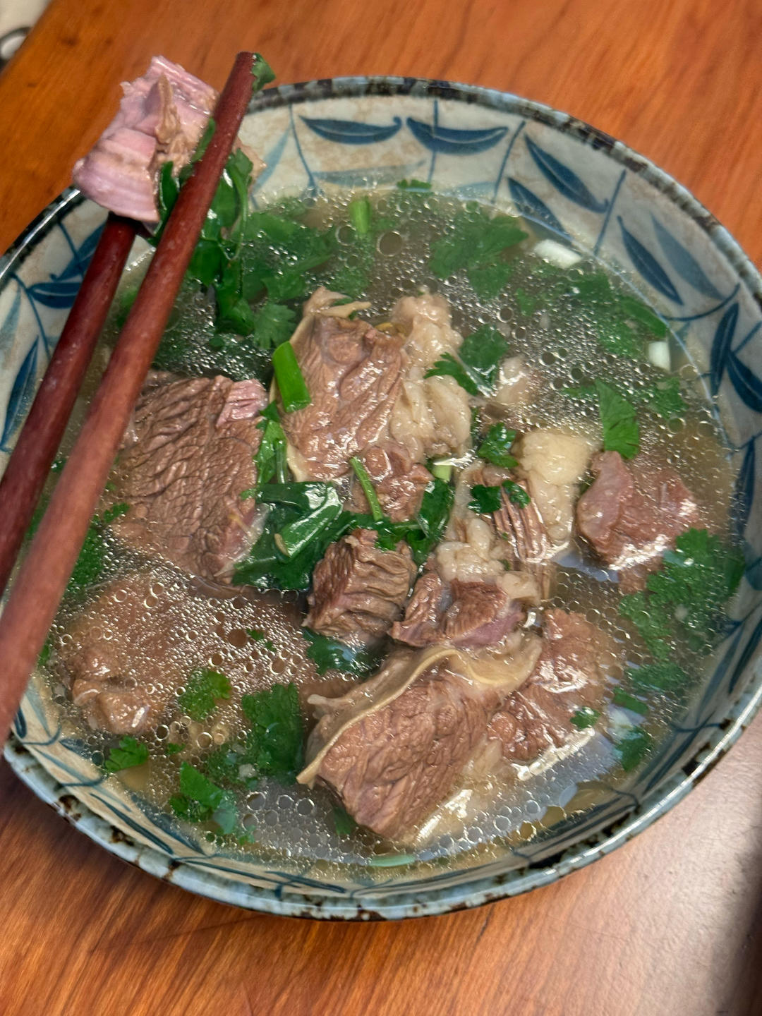 焯水后放洋葱🧅葱姜八角桂皮香叶。小茴香。 加热水熟了放香菜味精香葱。 就着大馒头孩子超爱吃