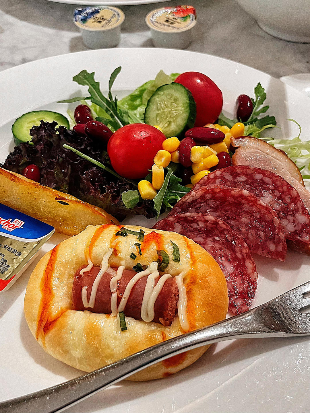 LOVE恋上鱼 做过 5月早餐马拉松 #享味欧洲# 五月,如花美眷不语轻流年,光阴清浅欢喜小人间。足不出户,享受欧洲美味,旅途中,也能品尝欧式脆皮肠,萨拉米,欧包……🎉早安吖!假期愉快!🔛小琰同学今日份早餐:酒店早餐 自助随意😛(昨天都说我晒图太矜持……好吧、我们的战斗力……才第一轮……🤣🤣非要我这样好嘛……🤭) 05-04
