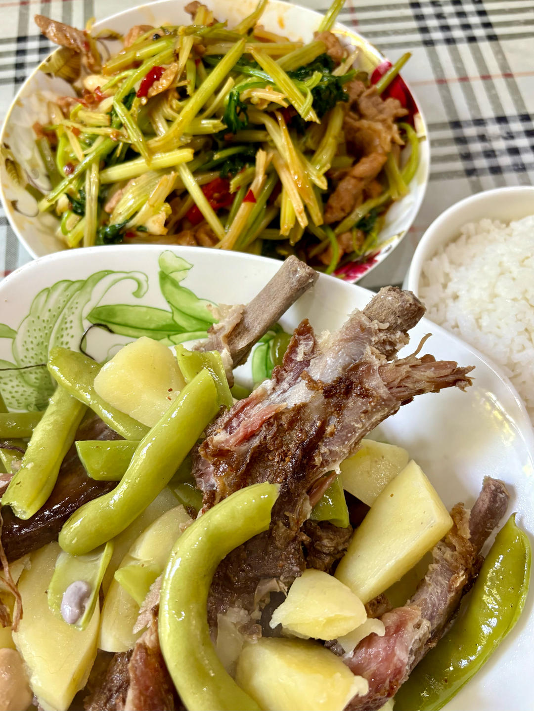 芹菜炒肉丝 腊排骨煮耙耙菜
