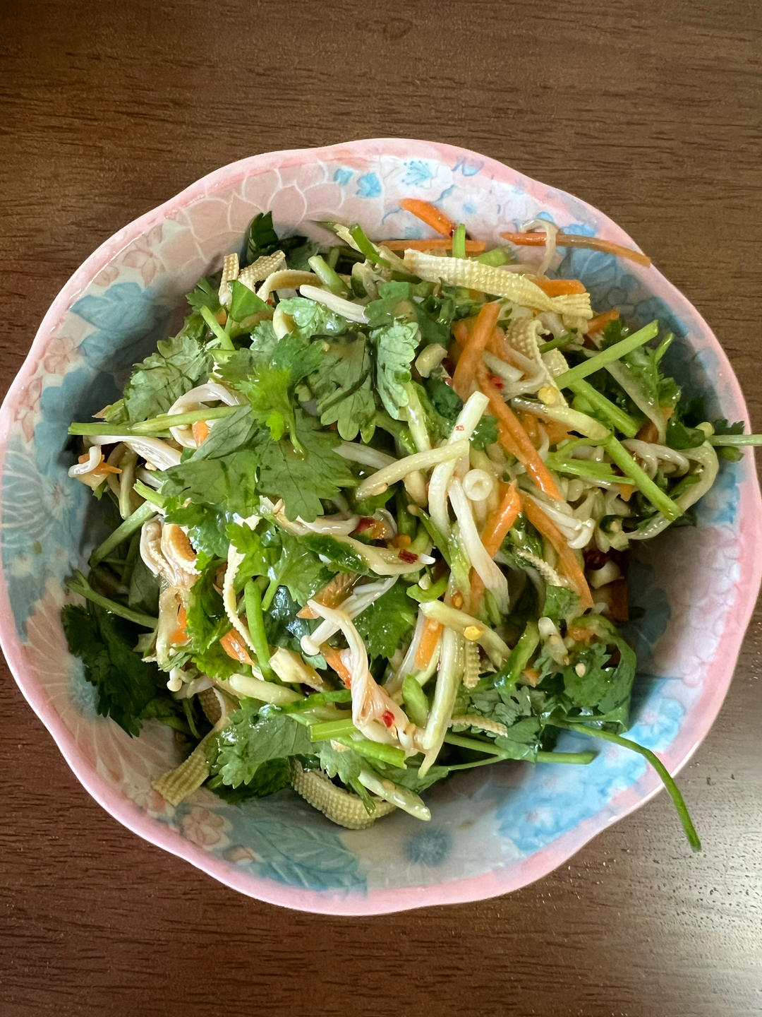20250518,凉拌菜(豆腐丝+金针菇+黄瓜丝+胡萝卜丝+香菜)
