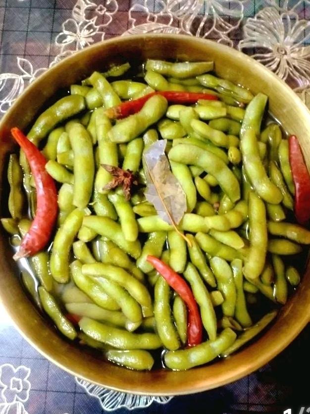 娜娜食堂 做过 2025年06月16日 盐水五香毛豆夏天的最爱,跟啤酒很搭哦,煮毛豆的窍门就是不能盖盖,这样煮出来的毛豆颜色翠绿!毛豆洗几次,剪去两头,容易入味,放入锅中一次性加水,花椒八角香叶干辣椒,盐开锅转小火煮十分钟,就在汤汁里面泡着才好吃! 06-16