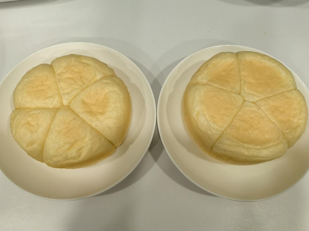 蒸面包:蒸了30分钟。面包配方,用蒸代替烤,做给孩子吃。软乎乎的。