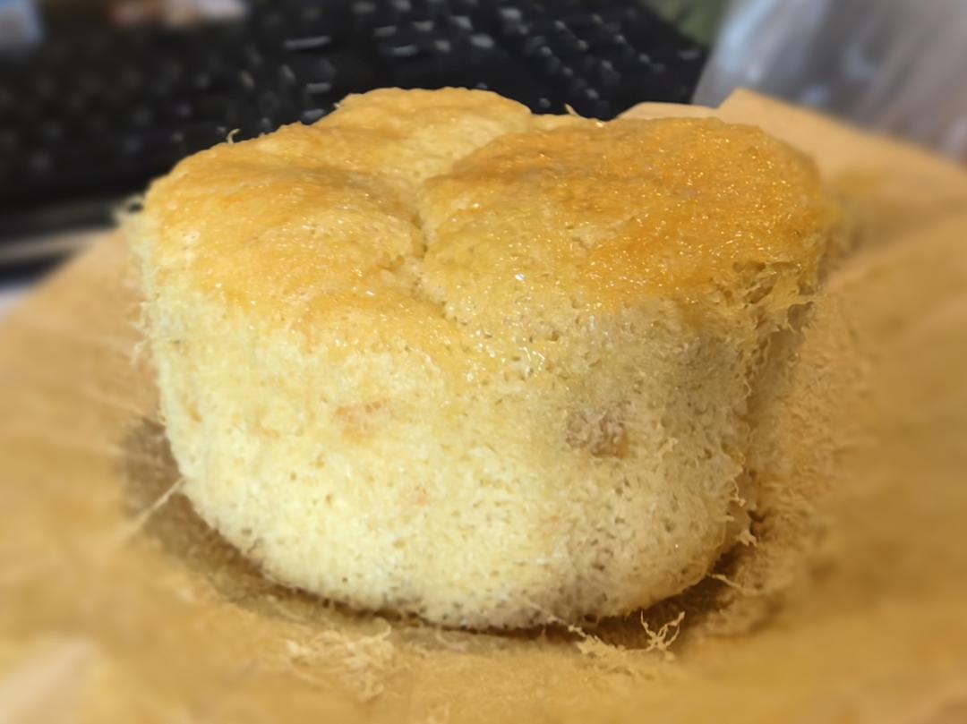 拔丝蛋糕,在小四卷的基础上,蛋黄糊里加入肉松(一个鸡蛋20g)