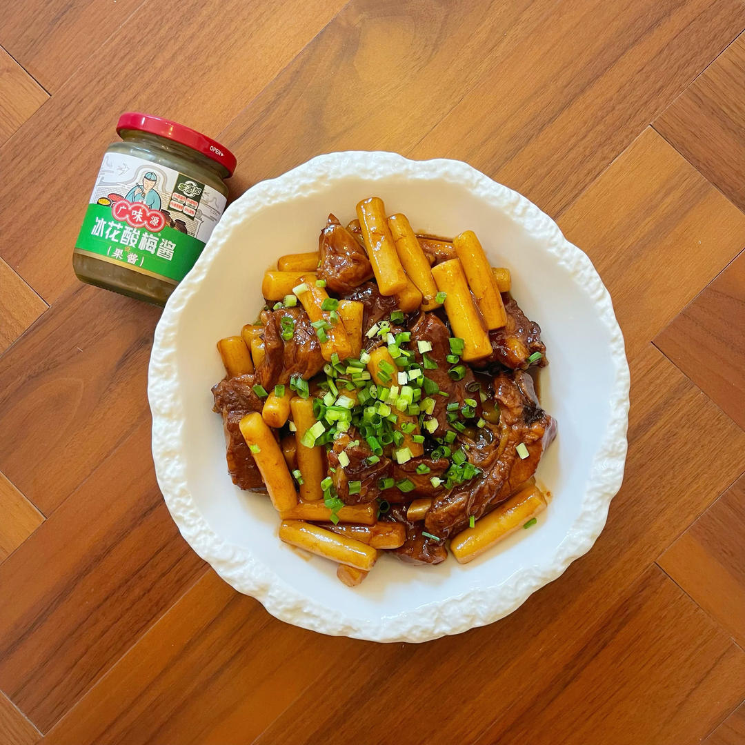 把常做的糖醋排骨变成了冰花酸梅酱口味~一样好吃😋真的很爱排骨年糕里的年糕,已经是我菜谱中的固定搭配了🥰~