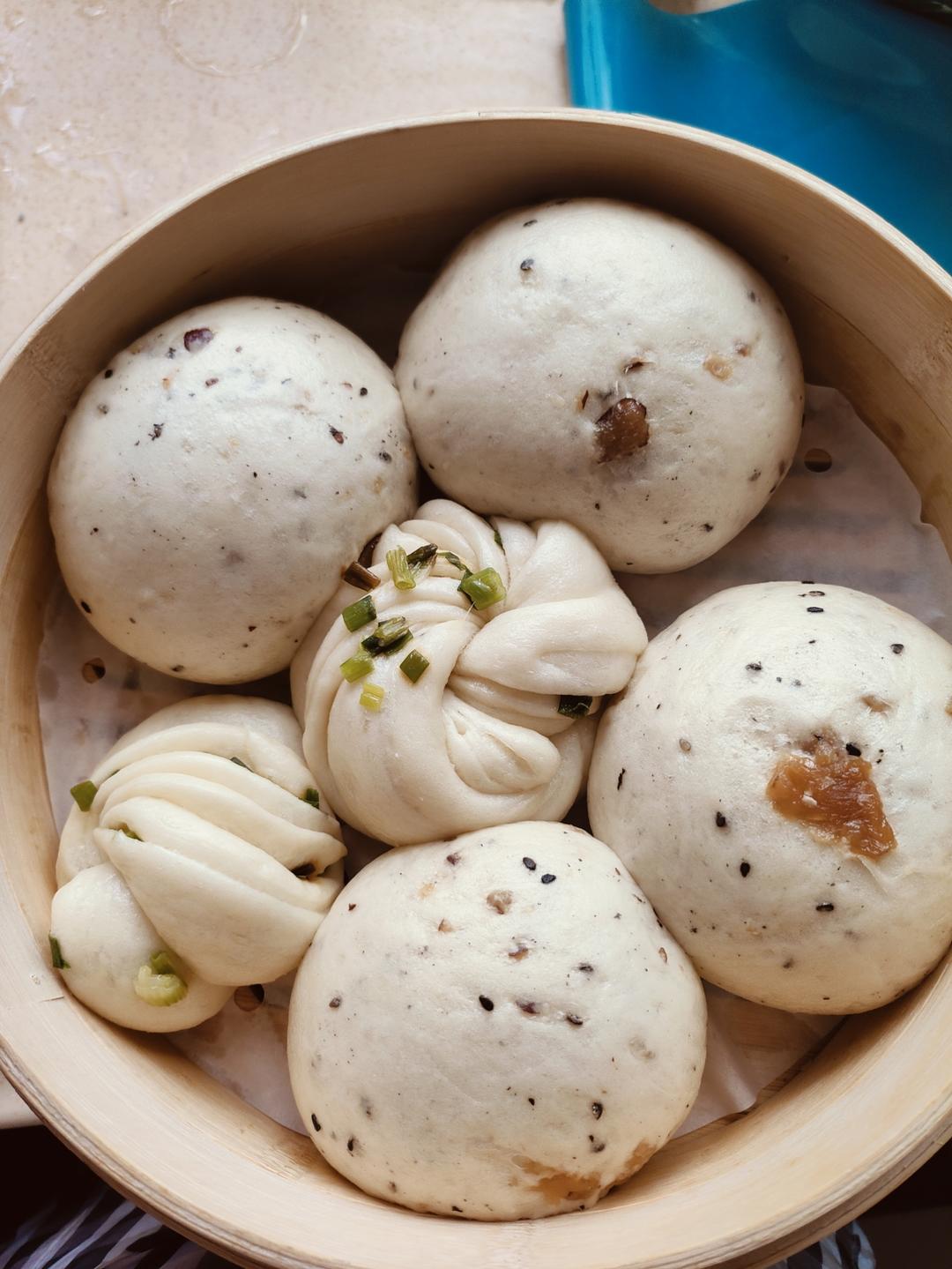 花卷,桂圆红枣芝麻包,当午饭了