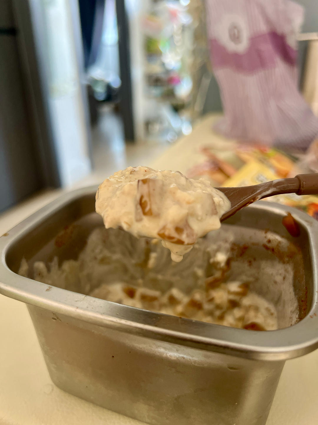 妈妈临走剩了半个苹果,切丁,黄油🧈红糖 煎焦,再少许水煮软 收干 撒肉桂粉