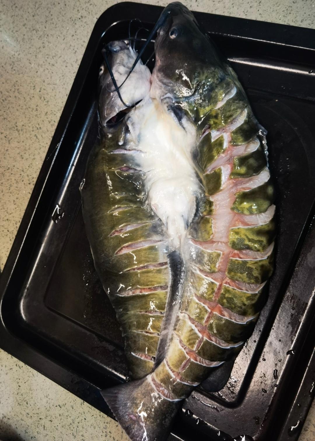 继续操练学习烤鱼,先腌制中 ,腌制好了再烤箱里烤…