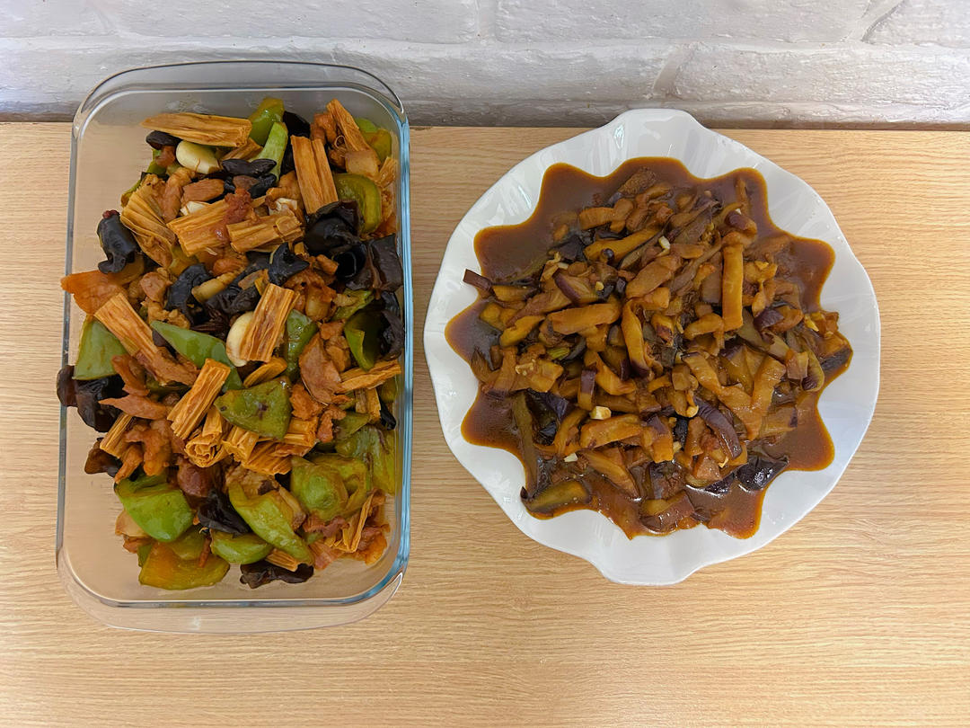 炒茄子,腐竹木耳炒肉。午餐·2025年7月10日