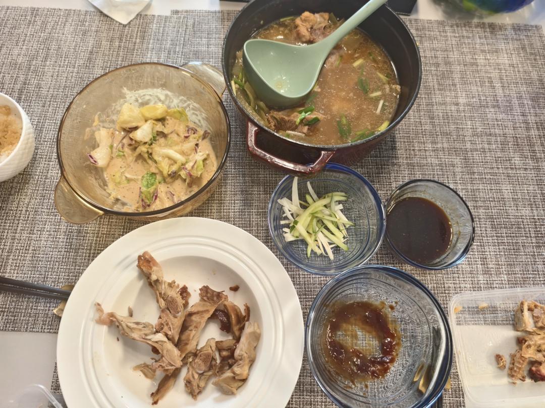 蔬菜沙拉+冬瓜黑毛猪排骨汤+陈记烤鸭