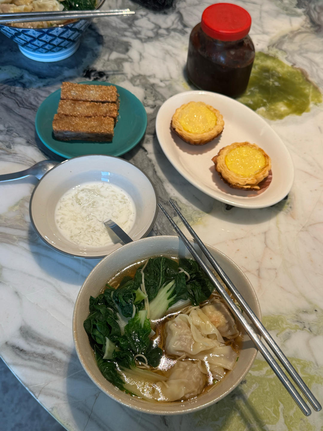 燕窝蛋挞,鲜虾馄饨面+燕窝饭后甜品~