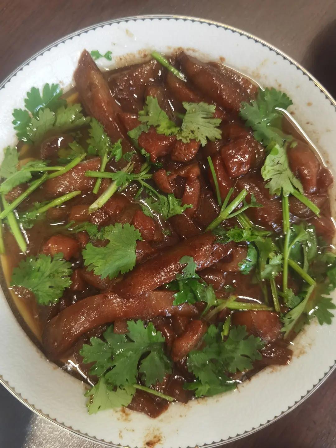 酱茄条:多放油,有猪肉更香,多炒一会,彻底软了,放甜面酱和大酱,出锅放蒜末香菜。