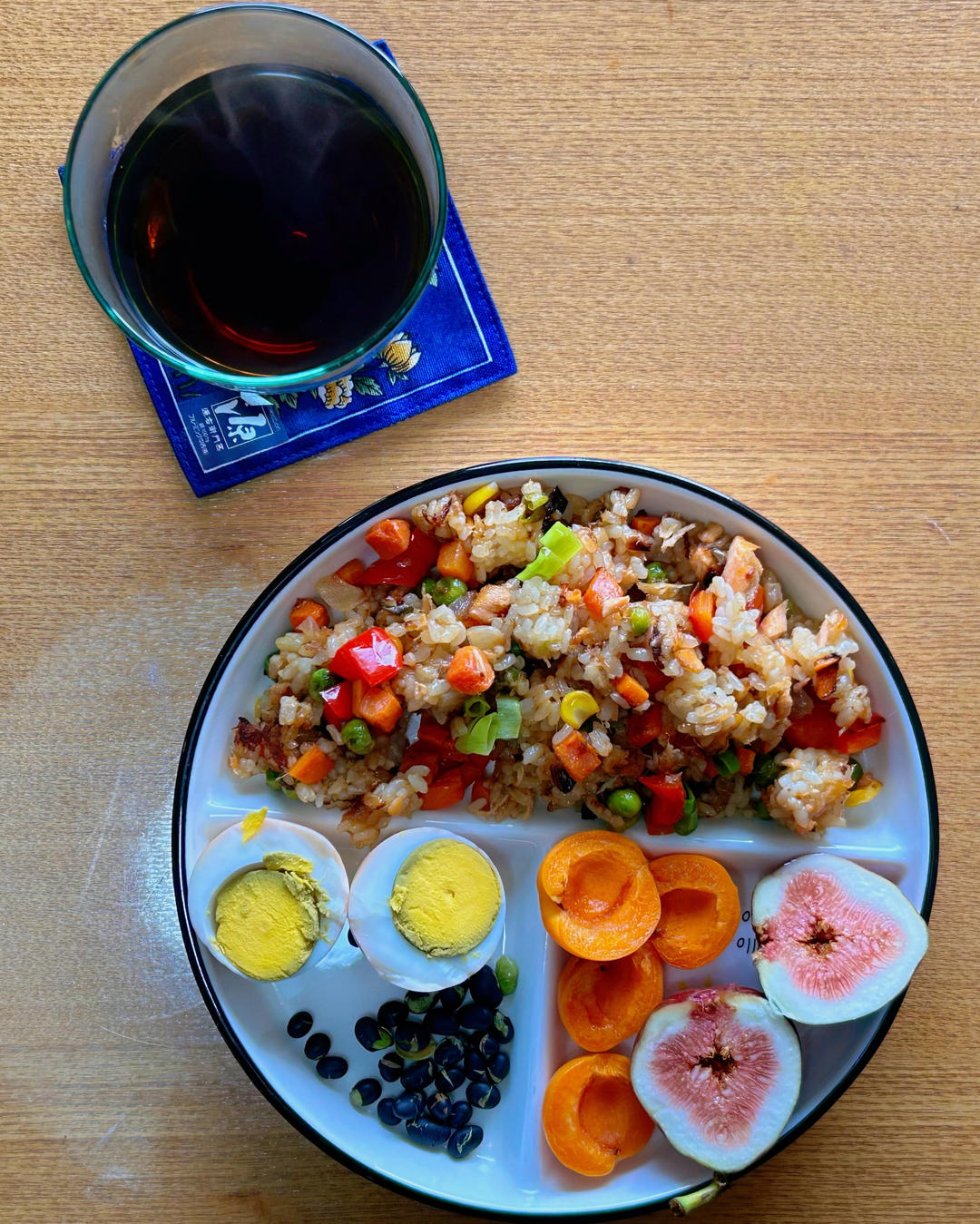 低脂三文鱼炒饭 首乌蛋 炒黑豆 甜杏儿 无花果 挂耳
