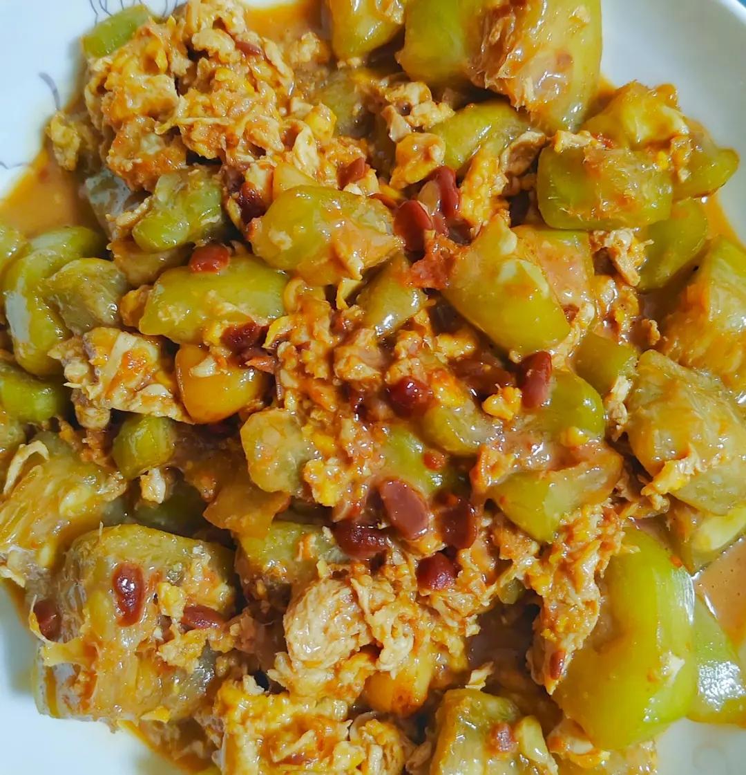 酱炒丝瓜:丝瓜鸡蛋