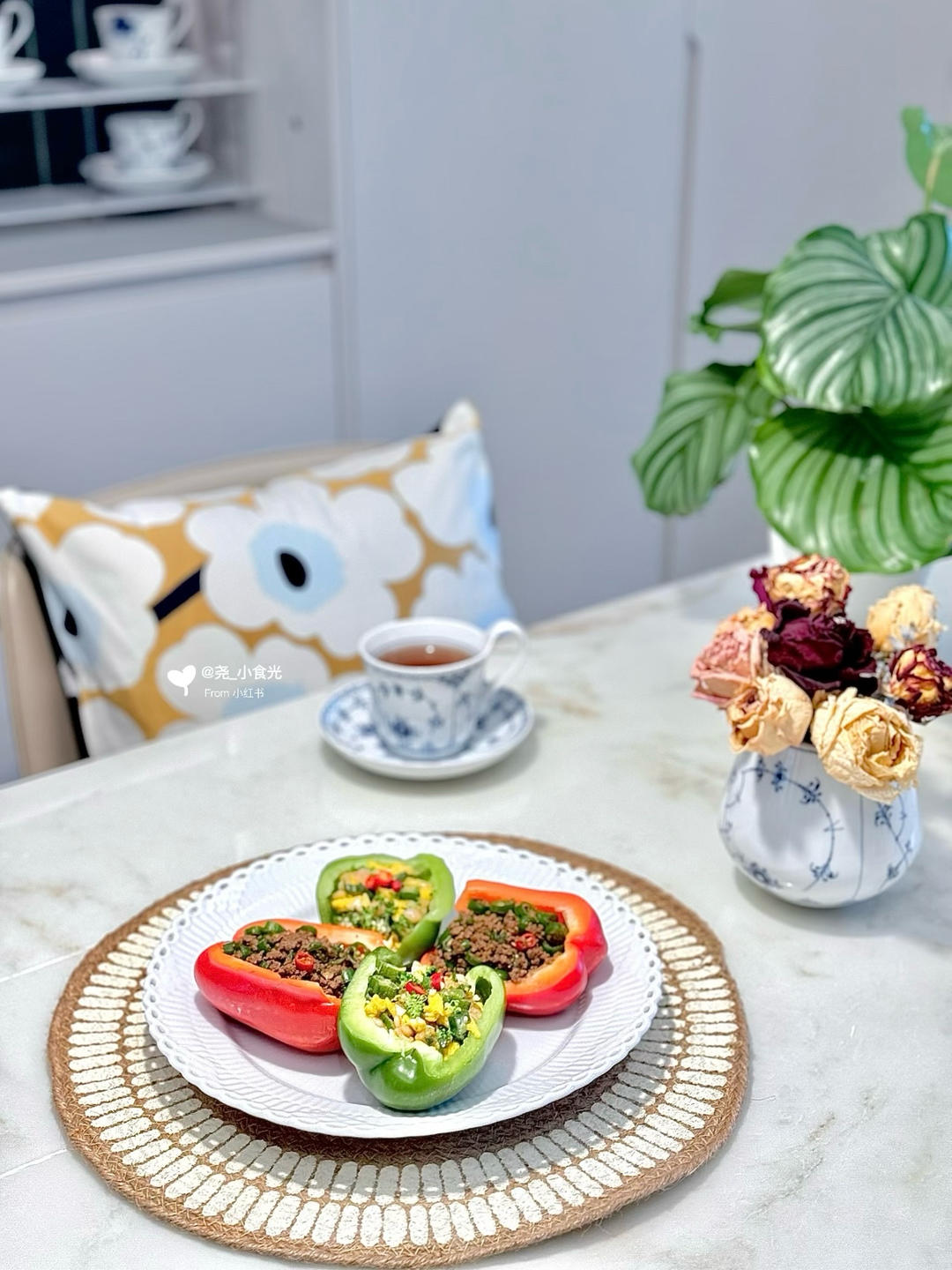 轻食之彩椒碗,线椒炒牛肉末和虾仁炒鸡蛋秋葵