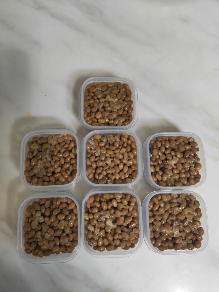 Elaine_0904 做过 自制纳豆(酸奶机,面包机,烤箱版) 200g多一点的豆子,能出7盒小方格,没有放白糖依旧很成功。泡发后拿瓷碗压力锅上汽45分钟,冷却后拌入菌粉放玻璃瓶里43℃发酵14小时,很好,夏天做非常不错。到时候拌点辣白菜或者生抽芥末或者拌饭都非常ok 08-06