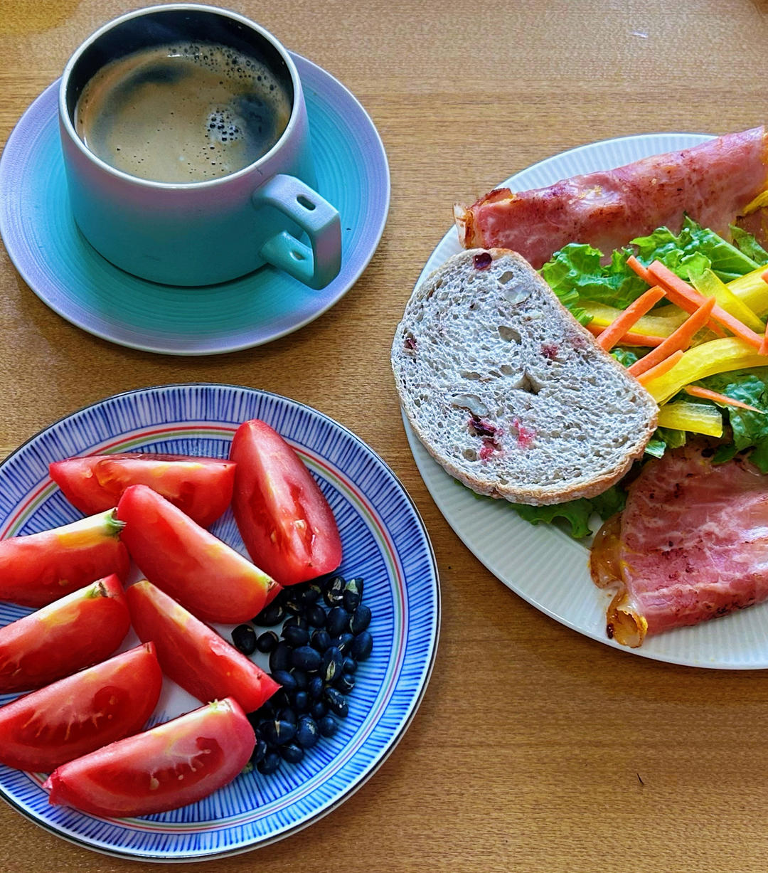 火腿片包蛋 蔓越莓面包 胡萝卜生菜彩椒沙拉