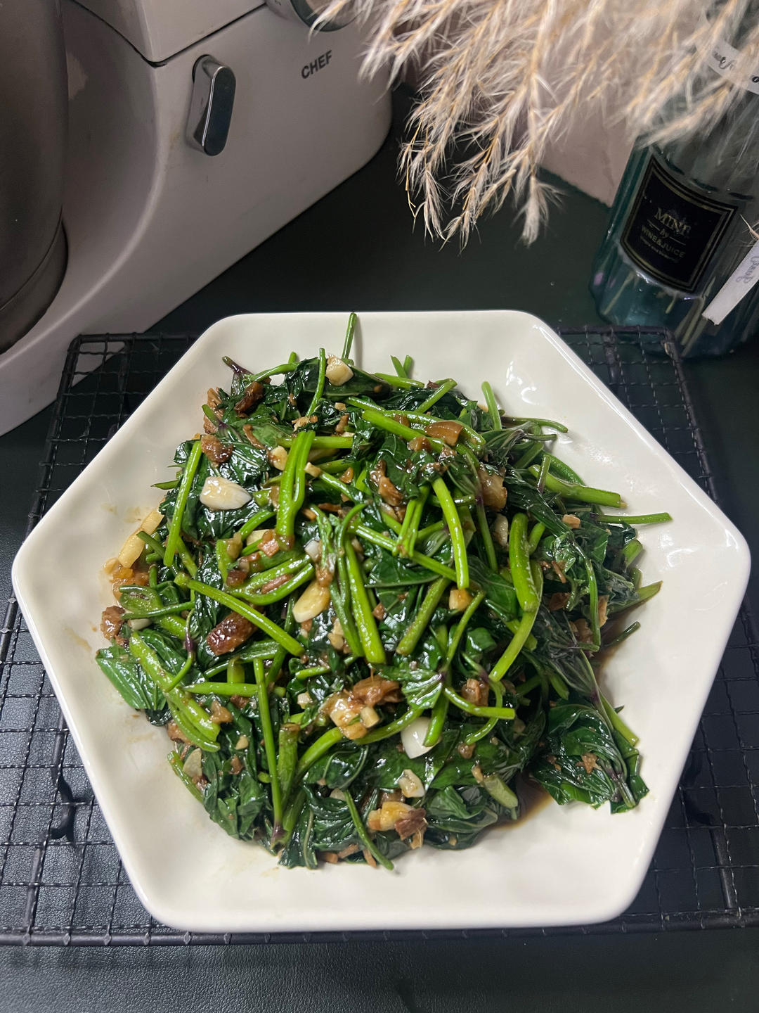 红薯叶和红薯杆儿一起炒,也好好吃