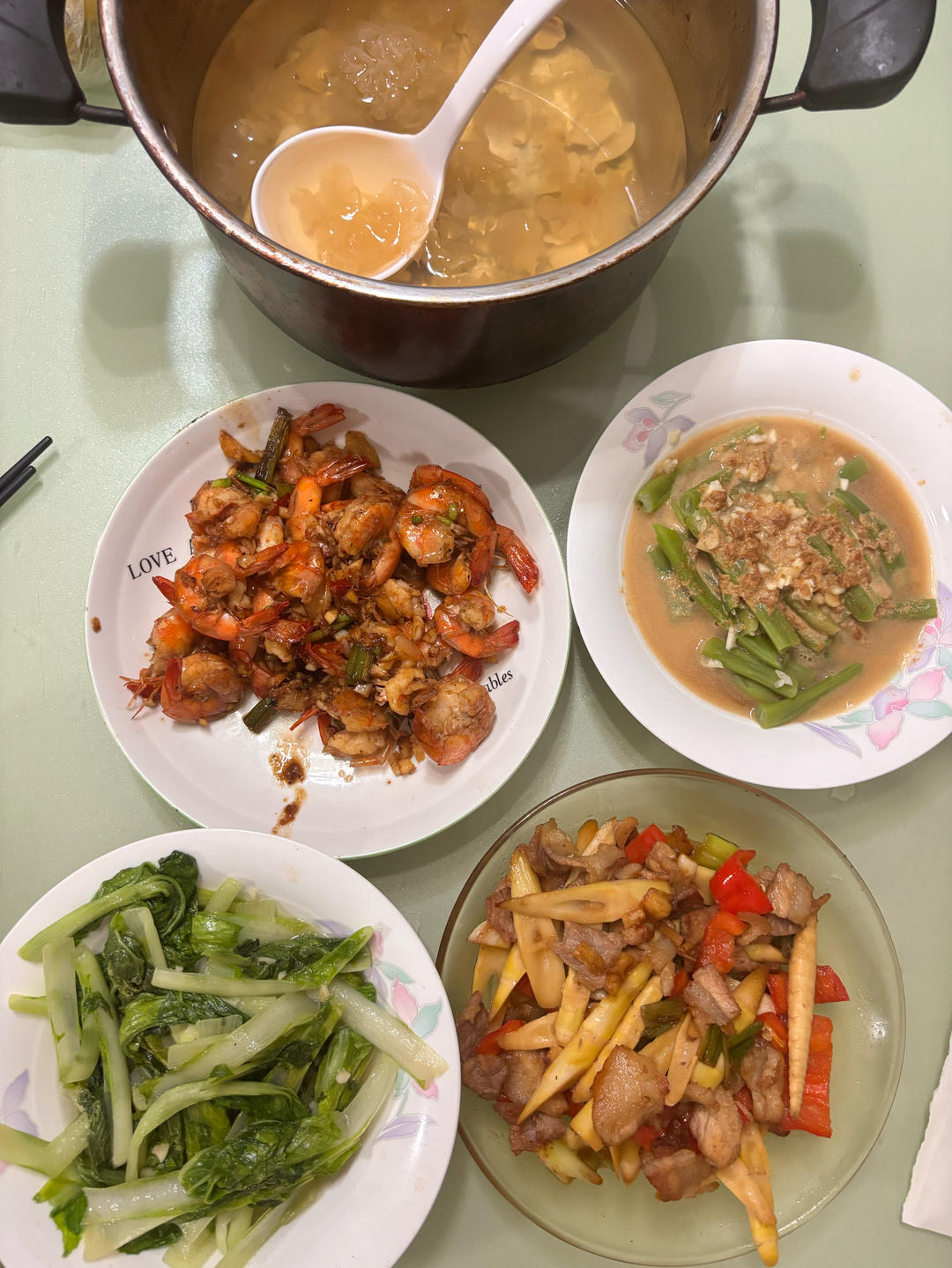 儿子做饭,四菜一汤