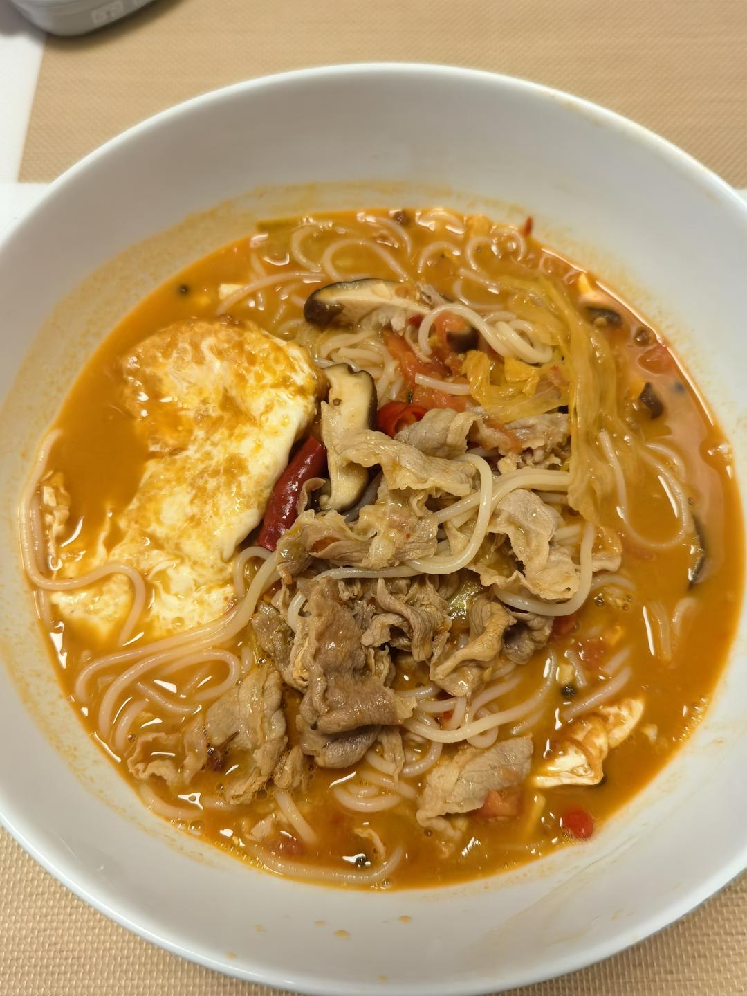 酸辣番茄肥牛米线,没有科技,可以喝汤~哈哈哈