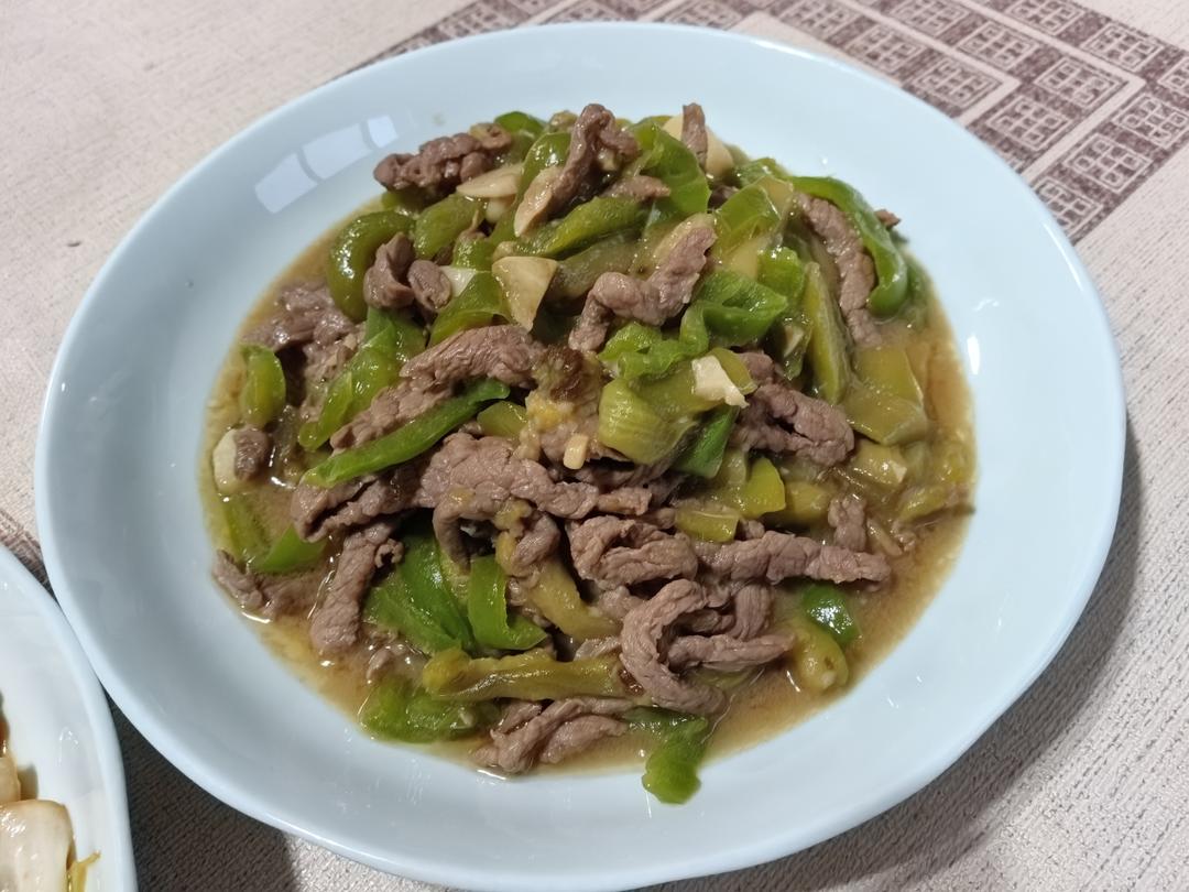 青椒茄子牛肉丝,手撕包菜