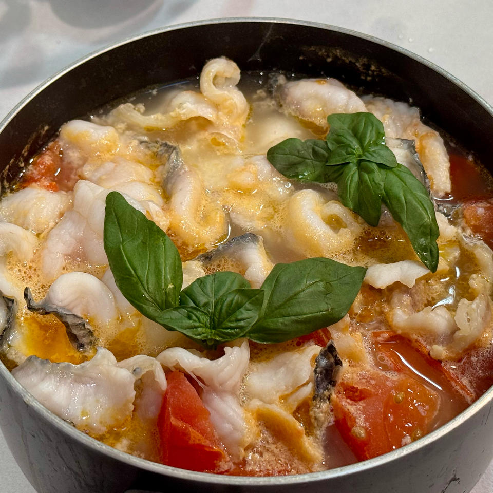 番茄芝士鱼片汤只加一点盐调味就很鲜香