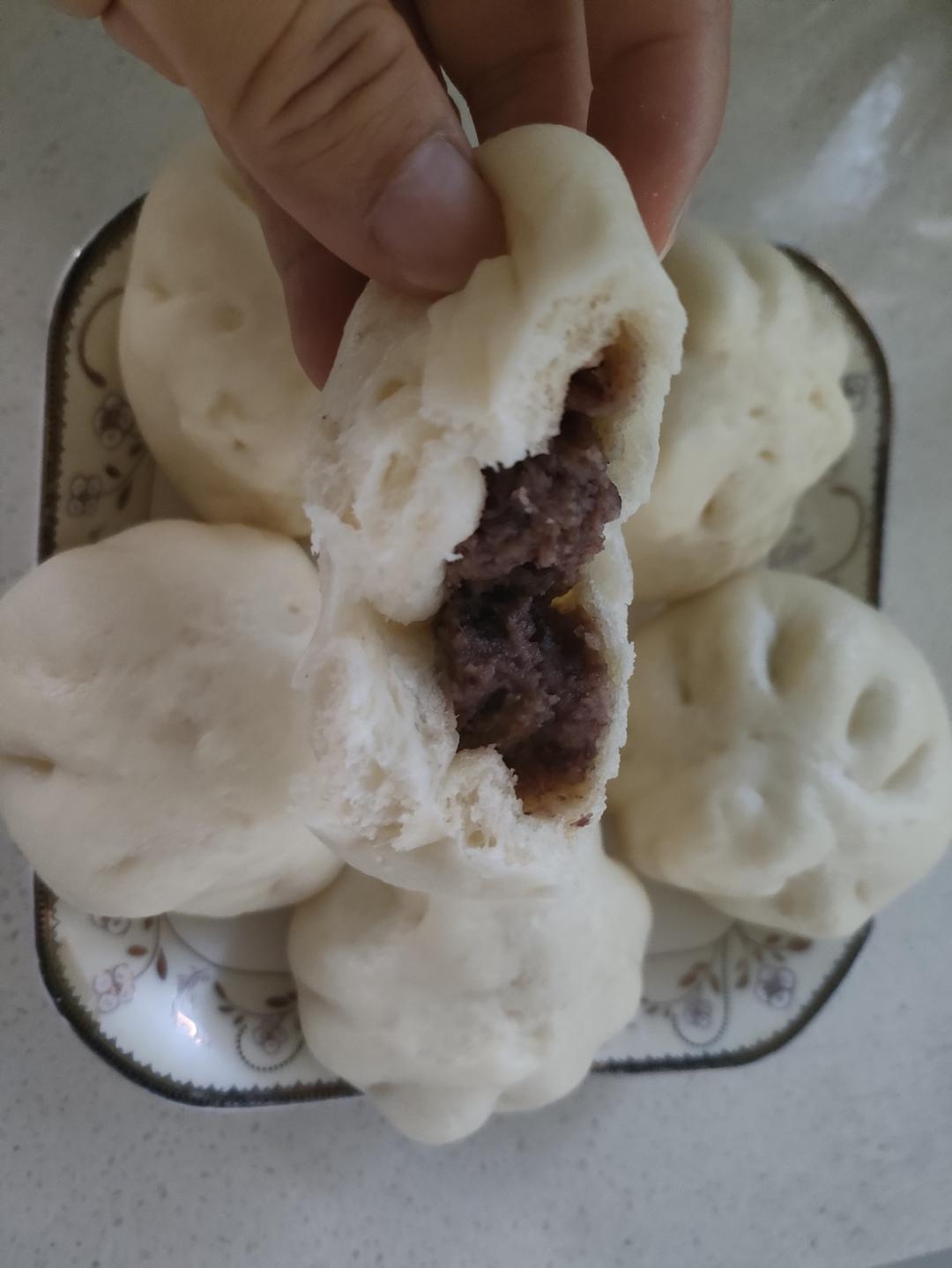 豆沙包,包子皮挺不错的,豆沙馅自己炒的有点儿油