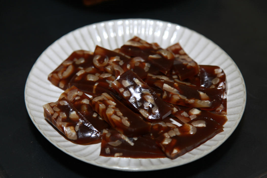 老抽手抖放多了,这次的肉皮冻颜色深了