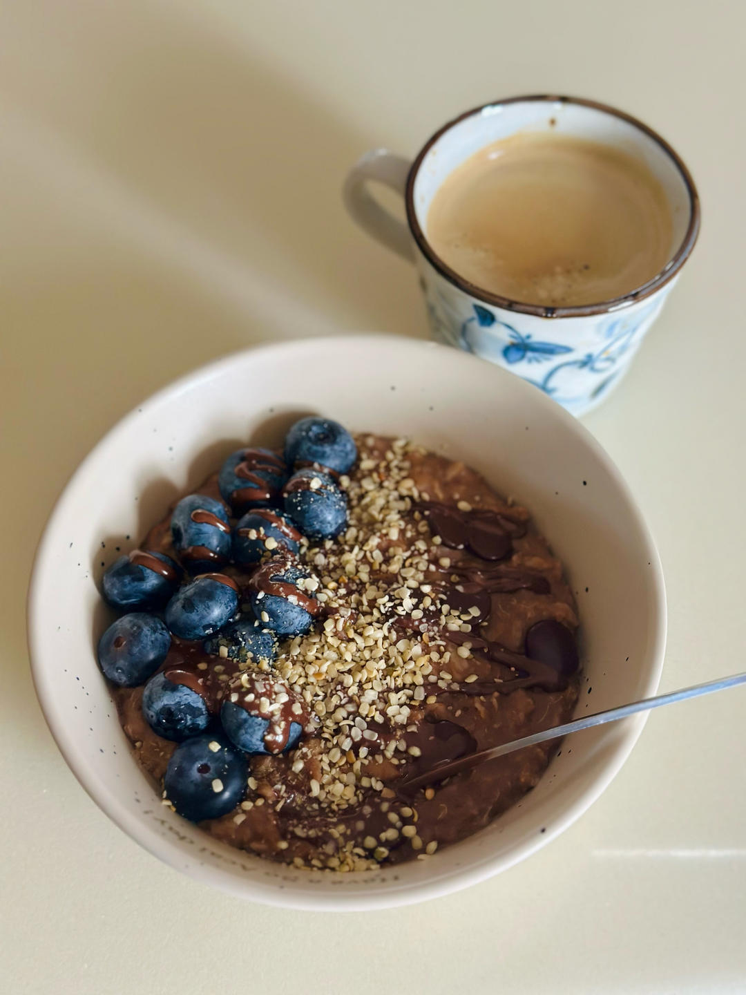 可可燕麦粥+蓝莓+火麻仁+可可酱