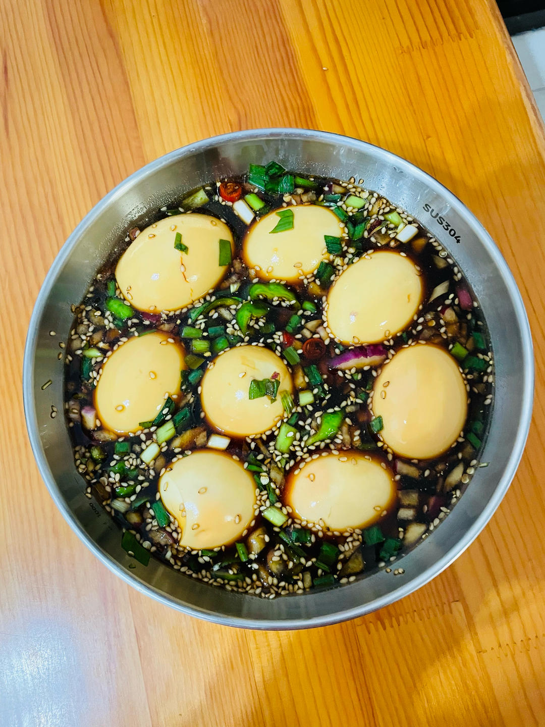 🥣早上泡了10个鸡蛋🥚,中午已入味,就点配料吃还挺好吃的,吃了两个😋