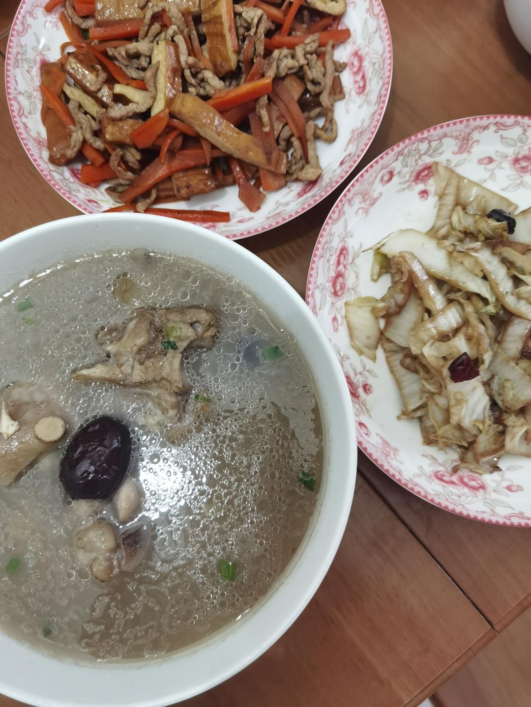 炖猪蹄,醋溜白菜,香干胡萝卜炒肉丝,米饭