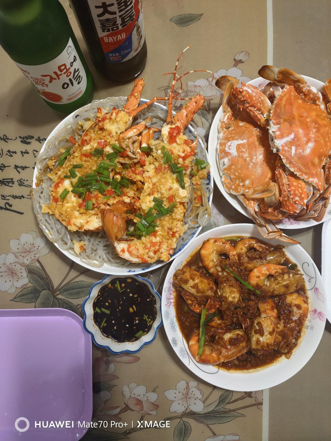 蒸梭子蟹+蒜蓉小青龙+芥末罗氏虾+真露+大窑👈啸宝掌厨
