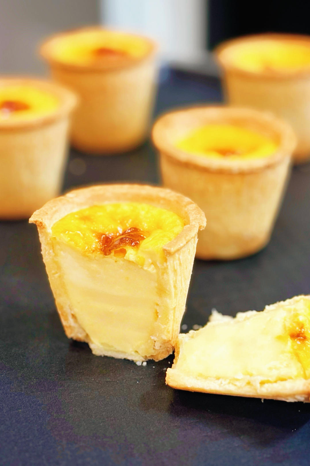 德式布丁挞液:250克牛奶,125克淡奶油,25克白糖,4个鸡蛋,过筛三次,9个挞皮,