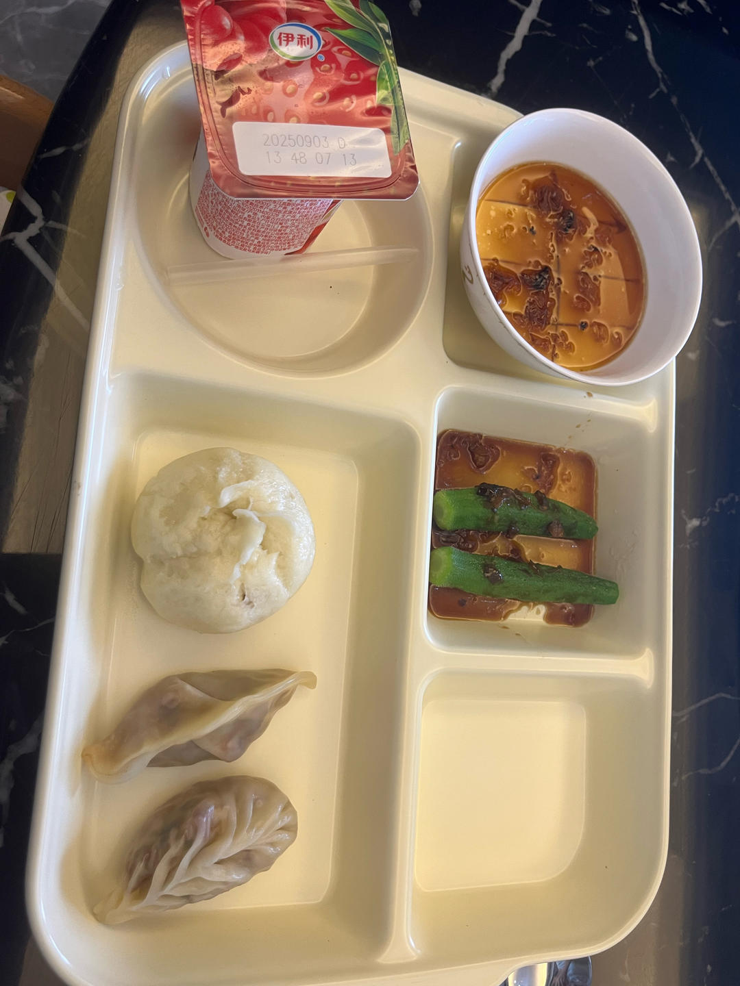 酸奶~香菇包🍄~饺子🥟~蒸蛋~秋葵