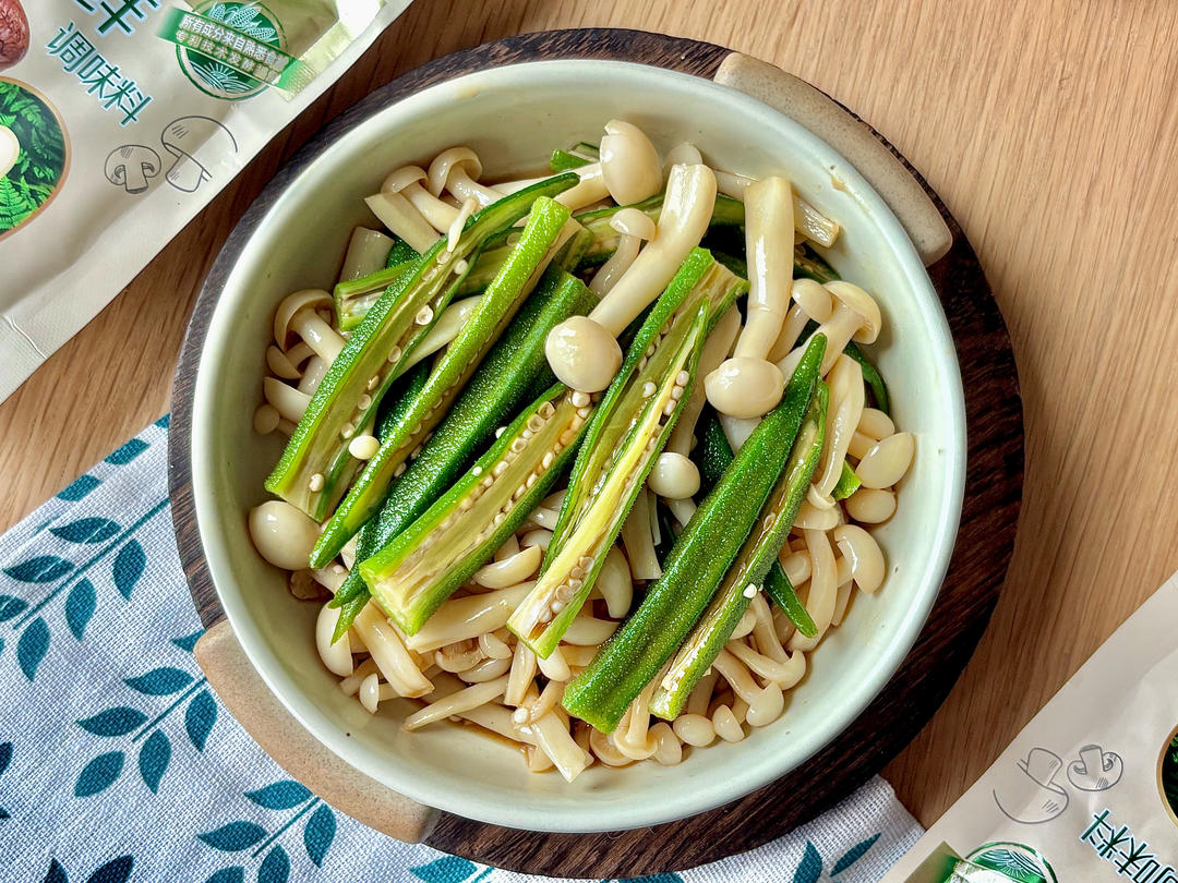 凉拌海鲜菇秋葵