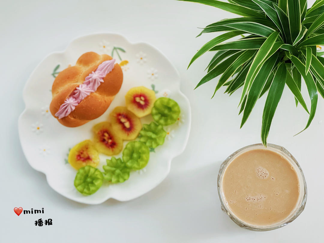 羽衣甘蓝酸奶乳酪包 猕猴桃 葡萄 红枣核桃露