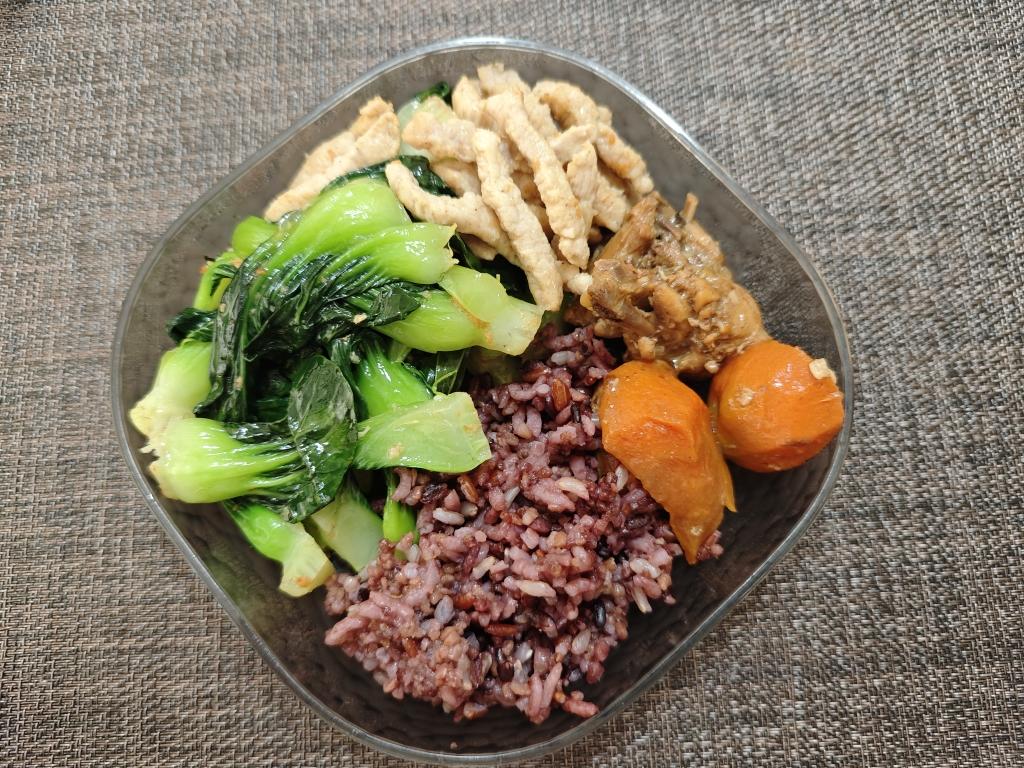 午餐:里脊丝炒上海青、红烧鸡肉胡萝卜、杂粮饭