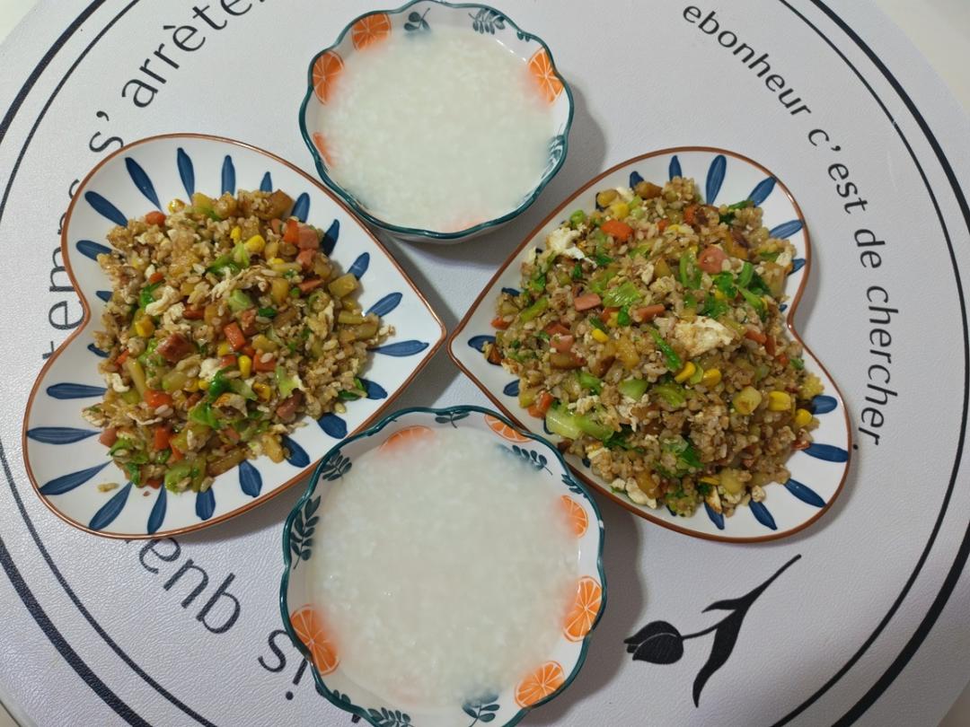 平凡瞬间海 做过 早餐•2025年9月24日 #早餐•2025年9月24日# #平凡瞬间海# 今天这份内容时蔬是相当丰富😜(6️⃣个鸡蛋🥚+2️⃣个土豆🥔+2️⃣根火腿肠+1️⃣个大西葫芦+1️⃣根胡萝卜🥕+1️⃣颗生菜+1️⃣包玉米粒+)蛋炒饭+大米粥 10天前