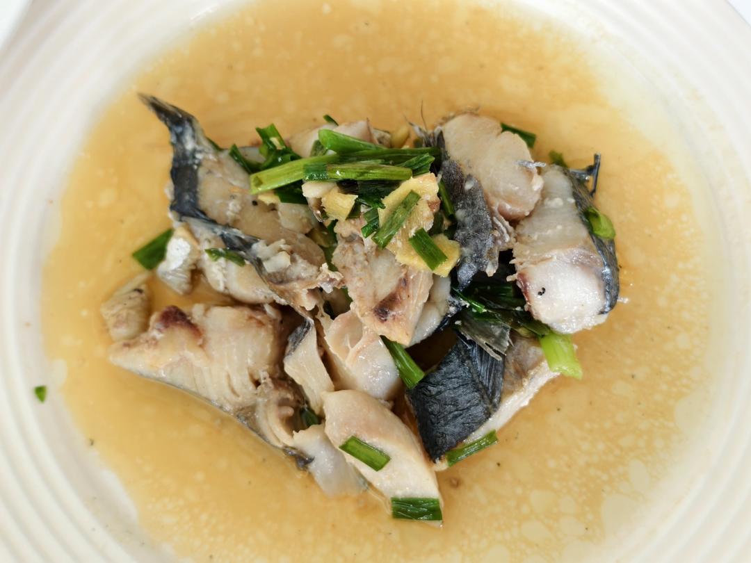 香煎变清烧马鲛鱼 最后加葱很好吃