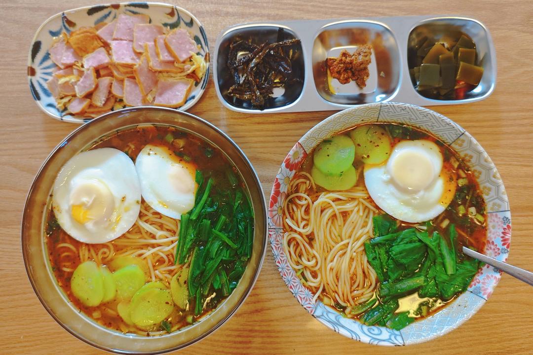 昨日晚餐 兰州牛肉面 秋林蛋卷 三种小咸菜