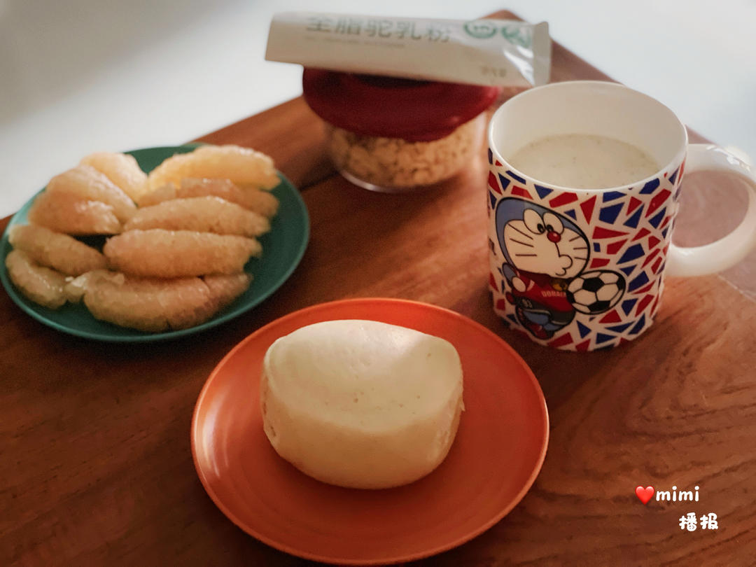 荞麦山药茯苓馒头 驼奶燕麦 柚子