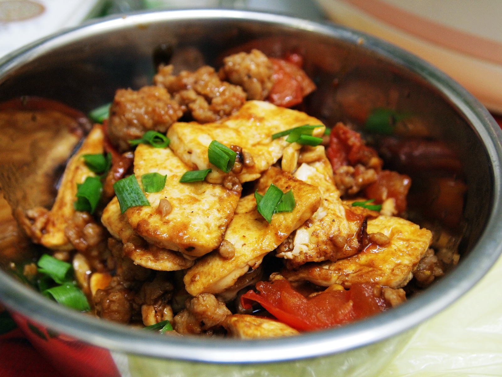 CasaLisboa 做过 番茄肉末豆腐 老子煎豆腐煎的都快吐血了!煎很久又煎不熟,煎太久又怕过火,不过最后出来的金黄色还是很漂亮滴~就是要一面煎三四十秒,之后关火用余温来煎,之后再翻面,不过最囧的是番茄汁没熬出来豆腐就倒下去了,最后把肉末豆腐全部捞出来再熬番茄汁。。。不过最后效果还是不错滴~ 2012-09-10