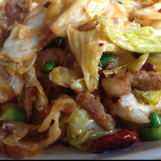 手撕包菜,加了点肉丁,更香!