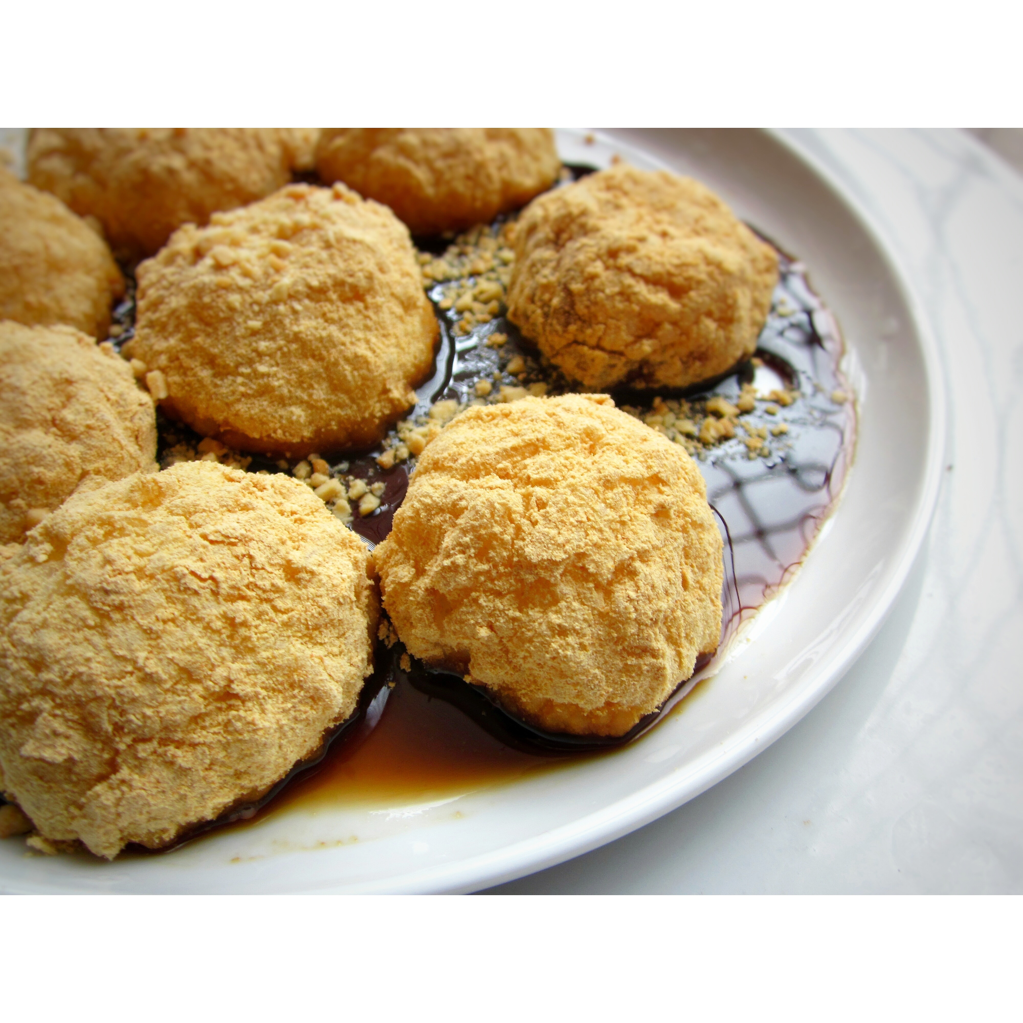 做粽子剩下的一点糯米终于用上啦,八个圆滚滚的糯米团子,包上厚厚的黄豆粉,蘸着红糖吃,棒!