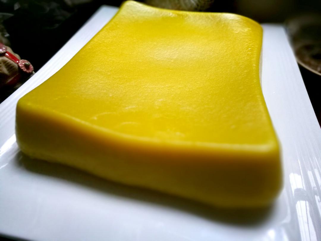 栀粿,山栀子泡水取汁,与米粉揉匀,再入水开浆,上盘蒸透,放凉即可食用。