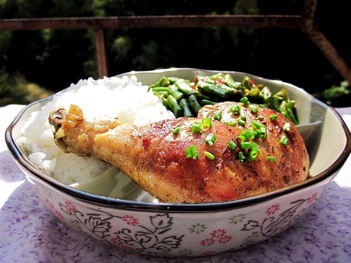 秋日的阳光暖暖地照在身上,边听音乐边吃午饭,今天的鸡腿煎得不错,再炒一个四季豆,吃得美美的才对得起...