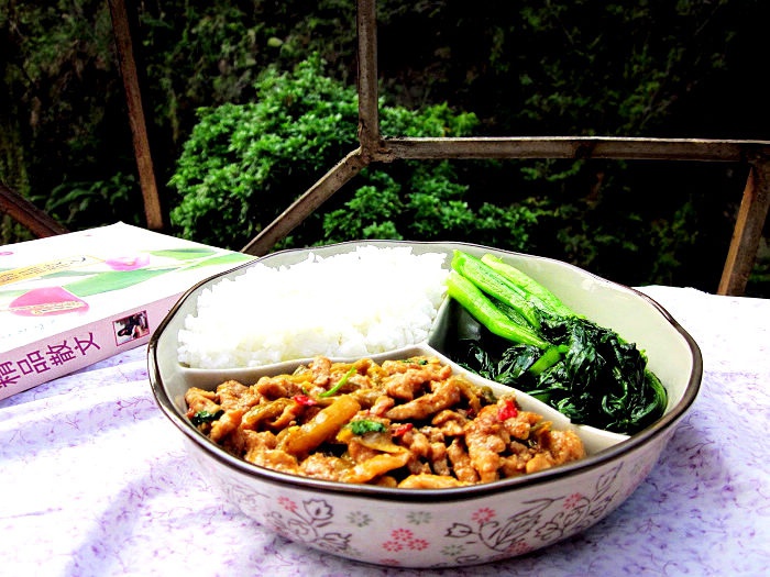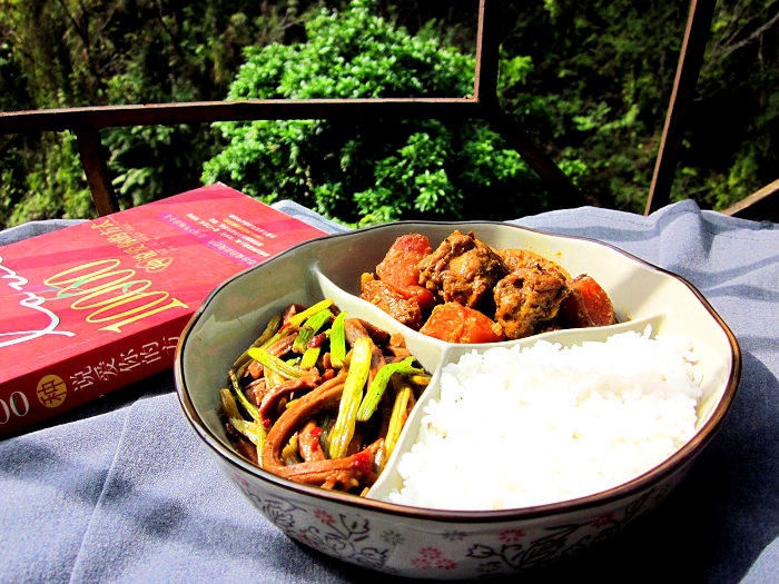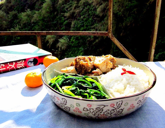 今天的阳光比较微弱,不过气温还可以,坐在阳台上边吃午饭边翻着张小娴的散文集,心情还不错~~今日午餐...