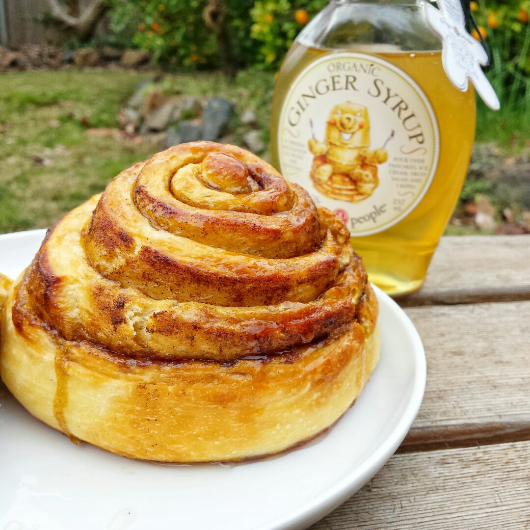 其实是今天早饭啦,火山肉桂卷配姜味糖浆~