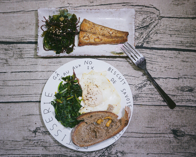 昨天休息日,早饭时间相对宽松些,赶紧消耗掉快蔫儿的菠菜!