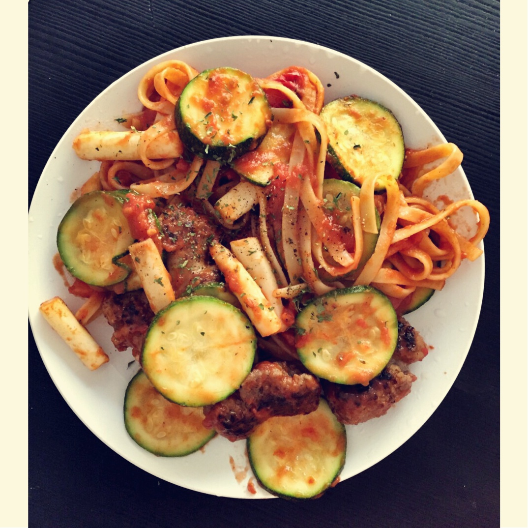 芦笋番茄西葫芦香肠Fettuccini 懒人午餐